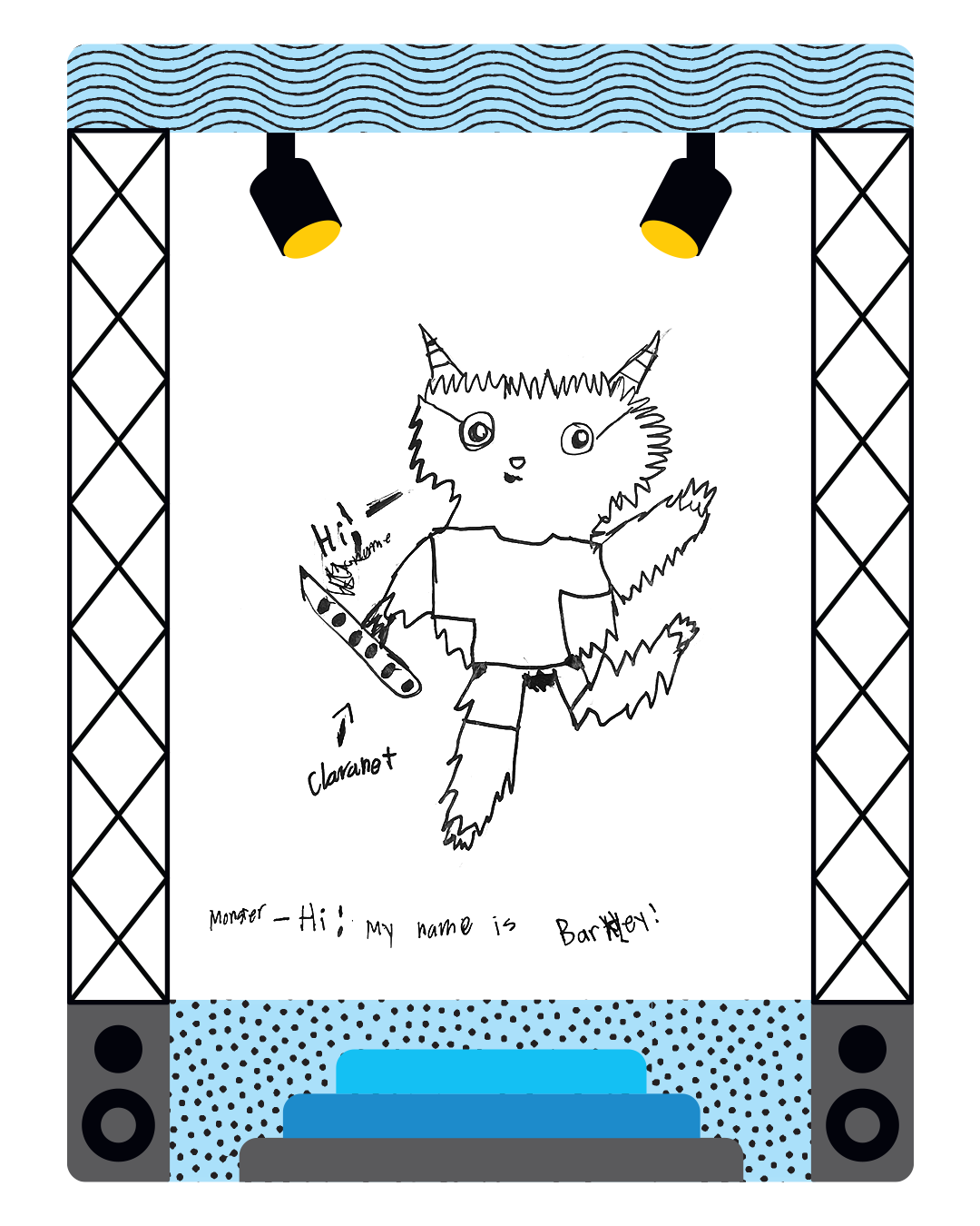 Luxmi's Bartley the Monster jammin' on a clarinet!